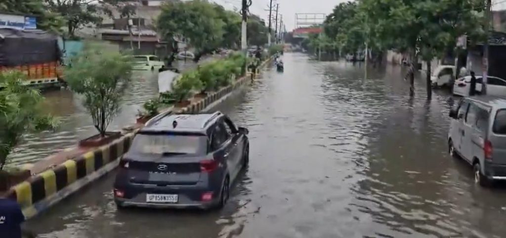 मथुरा: श्री कृष्ण जन्माष्टमी से पहले मथुरा में हुई भारी बारिश ने नगर निगम और प्रशासन के तमाम दावों को धराशायी कर दिया है। शुक्रवार को हुई मूसलाधार बारिश ने पूरे शहर को जलमग्न कर दिया, जिससे जनजीवन बुरी तरह प्रभावित हुआ। बारिश के कारण कई सड़कों पर पानी भर गया और सड़कों की स्थिति बदतर हो गई। कुछ स्थानों पर सड़कों के क्षतिग्रस्त होने की भी खबरें आई हैं, जिससे वाहन चालकों को भारी परेशानी का सामना करना पड़ रहा है। कई लोगों को अपनी गाड़ियाँ खींचकर ले जाने पर मजबूर होना पड़ा।