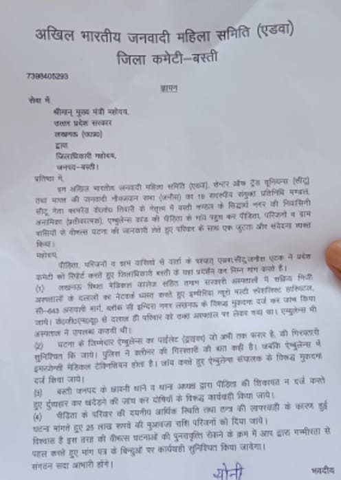 तीसरी बड़ी मांग उस निजी एंबुलेंस चालक की तत्काल गिरफ्तारी की थी, जिसने पीड़िता के इलाज में बाधा उत्पन्न की। इसके अलावा, एंबुलेंस संचालक के खिलाफ भी कड़ी कानूनी कार्रवाई की मांग की गई। चौथी और महत्वपूर्ण मांग बस्ती के छावनी थाने के पुलिसकर्मियों की जांच और उनके खिलाफ कार्रवाई थी, जिन्होंने समय पर सूचना प्राप्त होने के बावजूद प्राथमिकी दर्ज नहीं की। इसके साथ ही, पीड़ित परिवार को 25 लाख रुपए का मुआवजा दिए जाने की भी मांग उठाई गई।