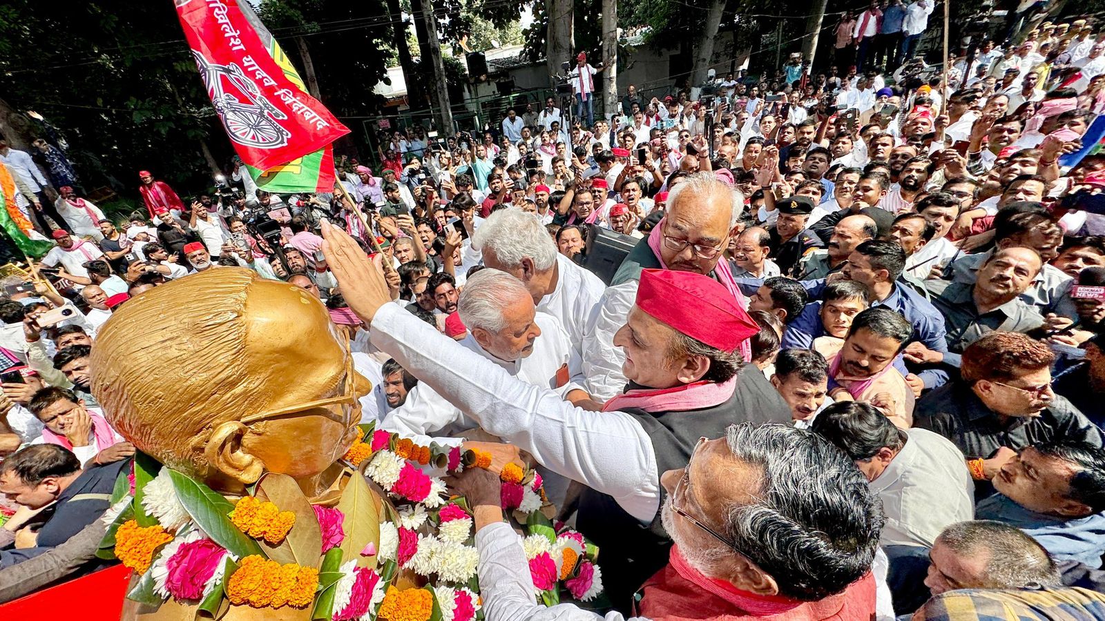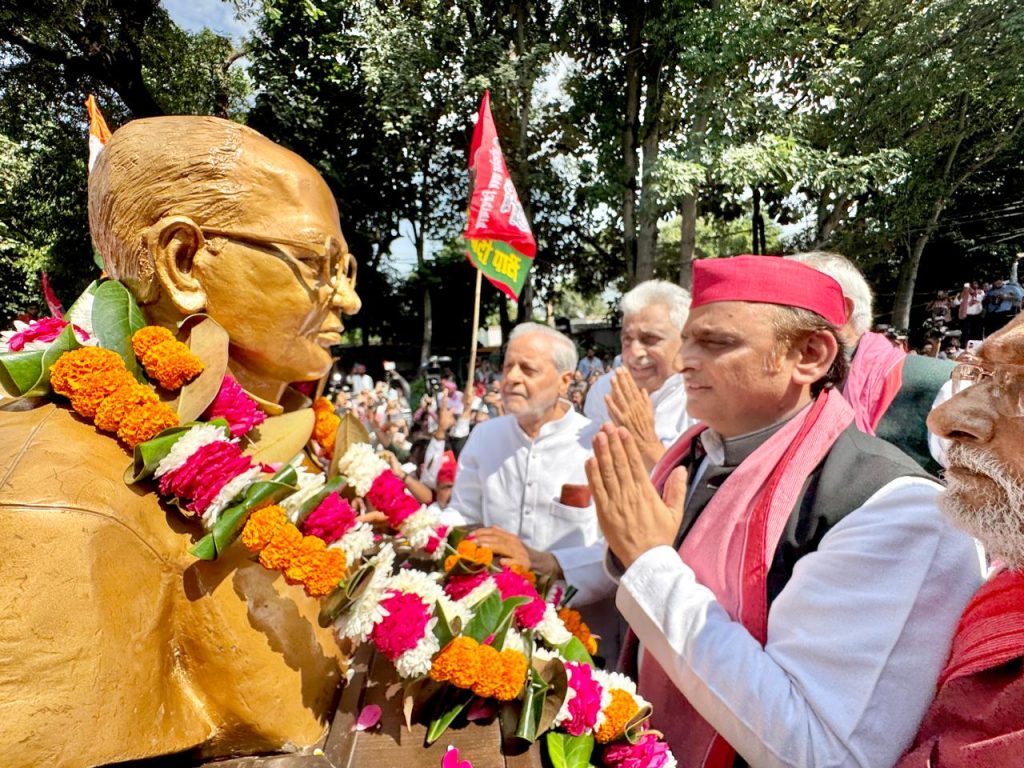 राजनीतिक हंगामे के बीच अखिलेश यादव ने सड़क पर दी जय प्रकाश नारायण को श्रद्धांजलि