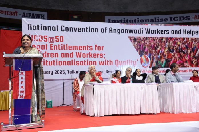 नई दिल्ली, 13 फरवरी 2025: आंगनवाड़ी कार्यकर्ताओं और सहायिकाओं के अखिल भारतीय महासंघ (AIFAWH) द्वारा आयोजित राष्ट्रीय अधिवेशन ने केंद्रीय ट्रेड यूनियनों के आह्वान पर मई 2025 के पहले सप्ताह में अखिल भारतीय हड़ताल का आह्वान किया है। इस हड़ताल का मुख्य उद्देश्य आंगनवाड़ी कार्यकर्ताओं और सहायिकाओं के नियमितीकरण और आईसीडीएस (ICDS) के संस्थागतकरण की मांगों को लेकर सरकार पर दबाव बनाना है।