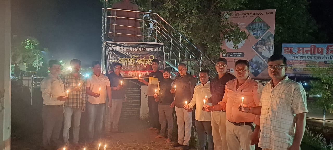बस्ती। टीचर वेलफेयर ट्रस्ट द्वारा बस्ती के तिरंगा चौराहे पर पहलगाम (कश्मीर) में हुए आतंकी हमले में मारे गए पर्यटकों की आत्मा की शांति के लिए श्रद्धांजलि सभा आयोजित की गई।सभा की अध्यक्षता ट्रस्ट के जिलाध्यक्ष डॉ. संजय कुमार ने की। उन्होंने कहा कि पूरा देश इस वीभत्स घटना से आहत है और सरकार को पीड़ित परिवारों की हर संभव मदद करनी चाहिए। ट्रस्ट के संयोजक सलीम हाशमी ने आतंकवादी हरकत की कड़ी निंदा करते हुए पाकिस्तान को कठोर दंड देने की मांग की।संस्थापक डॉ. सौरभ सिन्हा ने कहा कि दुख की इस घड़ी में पूरा देश पीड़ित परिवारों के साथ मजबूती से खड़ा है। कार्यकारी अध्यक्ष अभय दुबे ने कहा कि देशवासियों को धैर्य और एकता का परिचय देना होगा, साथ ही सरकार पर पूरा भरोसा रखना चाहिए दोषियों को सख्त सजा मिलेगी।