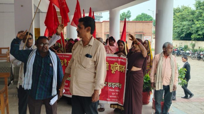 बस्ती। 01 मई। सेंटर ऑफ इण्डियन ट्रेड यूनियंस के नेतृत्व में मिड डे मील रसोइया कर्मचारी यूनियन, खे एम यू ,संविदा ,आशा आदि ने न्याय मार्ग स्थित कार्यालय पर अंतराष्ट्रीय मजदूर दिवस को संगोष्ठी कर के मनाया। संगोष्ठी के उपरांत जुलूस निकाल कर जिलाधिकारी कार्यालय पर प्रदर्शन करते हुए प्रधान मंत्री को संबोधित ज्ञापन प्रशासनिक अधिकारी को सौंपा।