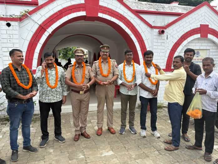 बस्ती में ई-रिक्शा बैटरी चोर गिरोह का पर्दाफाश करने वाली पुलिस टीम को ई रिक्शा चालकों ने किया सम्मानित