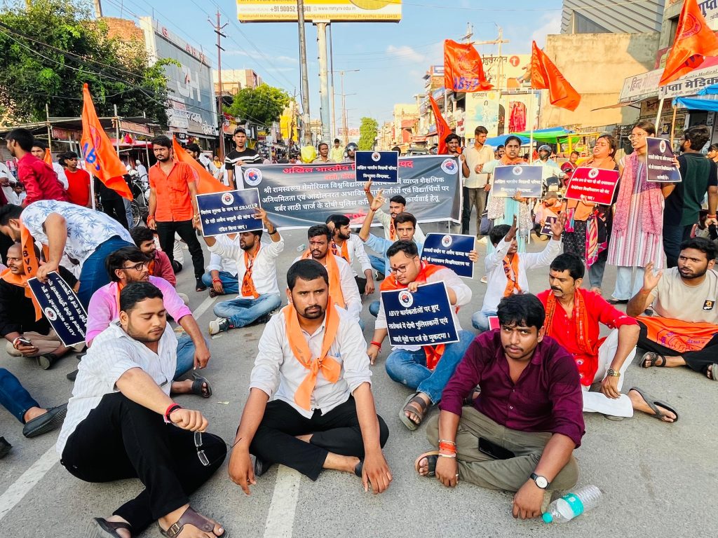 एबीवीपी का आरोप है कि विश्वविद्यालय प्रशासन छात्रों से अवैध वसूली कर रहा है और बिना आवश्यक मान्यता प्राप्त किए संस्थान चला रहा है। इस विरोध के दौरान कार्यकर्ताओं ने विश्वविद्यालय की तालाबंदी का प्रयास किया, जिस पर पुलिस ने शांतिपूर्ण ढंग से प्रदर्शन कर रहे छात्रों पर लाठीचार्ज किया।