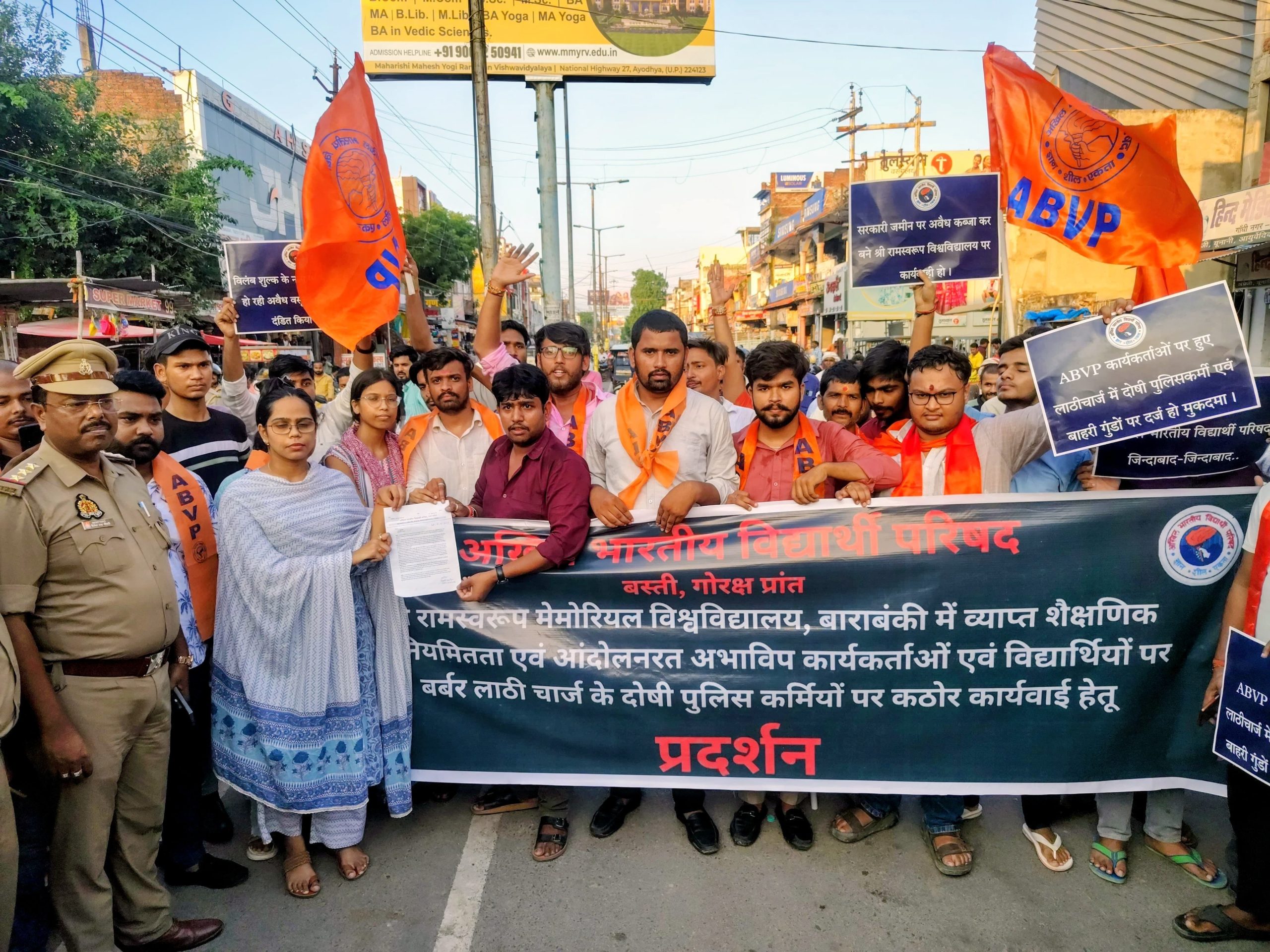 बस्ती। अखिल भारतीय विद्यार्थी परिषद (एबीवीपी) बस्ती जिले के कार्यकर्ताओं ने गुरुवार को श्री रामस्वरूप मेमोरियल विश्वविद्यालय, बाराबंकी में हो रही अवैध गतिविधियों और बिना मान्यता संचालित फर्जी शैक्षिक संस्थान के खिलाफ जोरदार विरोध प्रदर्शन किया।