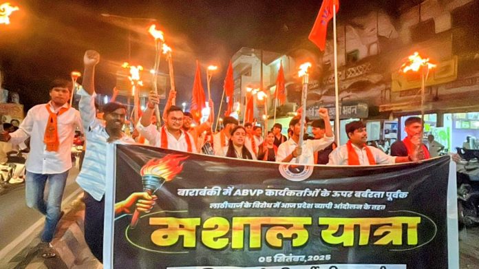बाराबंकी में अखिल भारतीय विद्यार्थी परिषद (ABVP) के कार्यकर्ताओं पर हुए लाठीचार्ज और श्रीरामस्वरूप मेमोरियल विश्वविद्यालय से जुड़े विवादों को लेकर बस्ती जिले में गुरुवार देर शाम ABVP ने मशाल यात्रा निकाली। परिषद ने इसे छात्र हितों और शिक्षा व्यवस्था की शुचिता के लिए संघर्ष बताते हुए प्रशासन को कठोर चेतावनी दी।