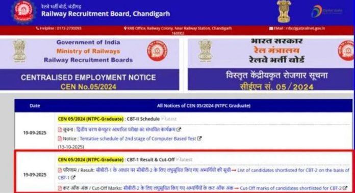 नई दिल्ली। रेलवे भर्ती बोर्ड (RRB) ने एनटीपीसी (स्नातक) ग्रेजुएट लेवल सीबीटी-1 परीक्षा का परिणाम घोषित कर दिया है। भारतीय रेलवे में 8,000 से अधिक पदों पर भर्ती के लिए आयोजित इस परीक्षा का परिणाम आरआरबी ने अपनी आधिकारिक और क्षेत्रीय वेबसाइटों पर अपलोड कर दिया है। अभ्यर्थी अपने पंजीकरण संख्या और जन्मतिथि का उपयोग कर व्यक्तिगत स्कोरकार्ड डाउनलोड कर सकते हैं।