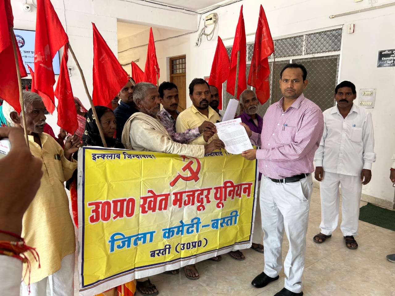 बस्ती। 13 अक्टूबर। उत्तर प्रदेश खेत मजदूर यूनियन देश व प्रदेश में मनुवादी सोच के आधार पर दलितों पर लगातार हो रहे हमलों के विरोध में जुलूस निकाल कर जिलाधिकारी कार्यालय पर प्रदर्शन करते हुए उप जिलाधिकारी के माध्यम से राष्ट्रपति महोदय को संबोधित तीन सूत्रीय ज्ञापन सौंपा।