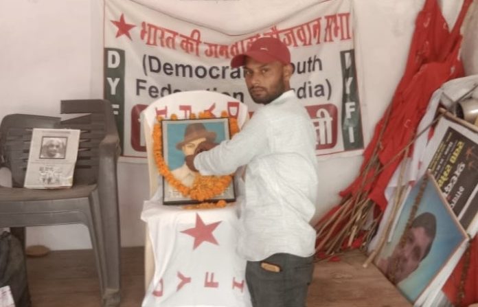 बस्ती। 05 नवंबर। भारत की जनवादी नौजवान सभा (जनौस) ने लोहिया कॉम्प्लेक्स स्थित कैंप कार्यालय पर स्थापना दिवस जनौस के झंडे को फहरा कर, भगत सिंह के फोटो पर पुष्पांजलि अर्पित किया।, शिक्षा, रोजगार और स्वास्थ्य के लिए संघर्ष के रूप मेंआयोजित किया गया।