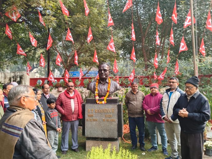 नई दिल्ली। भारतीय ट्रेड यूनियन आंदोलन के अग्रदूत और सीटू (Centre of Indian Trade Unions) के संस्थापक अध्यक्ष कॉमरेड बी.टी. रणदिवे की 121वीं जयंती के अवसर पर, सीटू के 18वें अखिल भारतीय सम्मेलन की पूर्व संध्या पर उनके स्मृति को भावपूर्ण श्रद्धांजलि अर्पित की गई। 19 दिसंबर 1904 को जन्मे कॉमरेड रणदिवे का जीवन मजदूर वर्ग की मुक्ति के संघर्ष का जीवंत प्रतीक रहा।