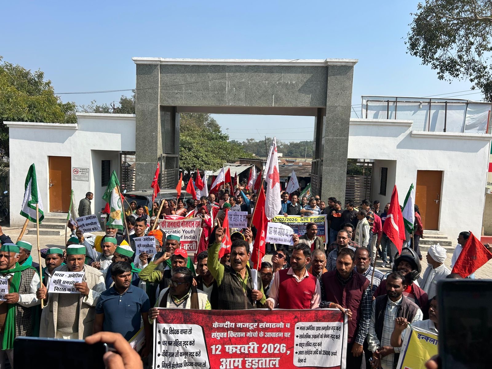 बस्ती, 12 फरवरी। ट्रेड यूनियन संगठनों और संयुक्त किसान मोर्चा ने जनपद में आयोजित देशव्यापी आम हड़ताल को सफल बताया है। सीटू सहित विभिन्न केंद्रीय श्रमिक महासंघों, खेत मजदूर यूनियन और संयुक्त किसान मोर्चा के आह्वान पर श्रमिकों और किसानों की मांगों को लेकर व्यापक प्रदर्शन किया गया।
