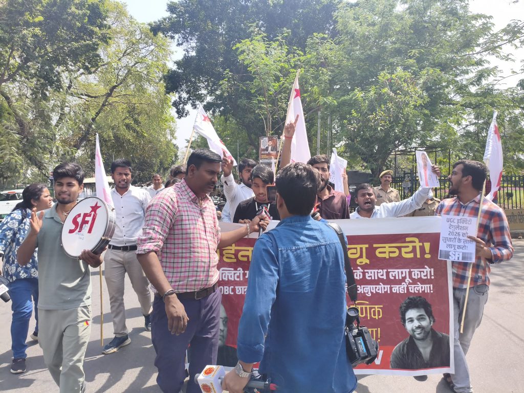 लखनऊ। स्टूडेंट्स फेडरेशन ऑफ इंडिया (SFI) के बैनर तले मंगलवार को राजधानी में छात्रों ने परिवर्तन चौक से जिलाधिकारी कार्यालय तक पैदल मार्च निकालकर ‘रोहित एक्ट’ और यूजीसी इक्विटी रेगुलेशन 2026 लागू करने की मांग उठाई। प्रदर्शनकारियों ने विभिन्न मांगों को लेकर जिलाधिकारी के माध्यम से राष्ट्रपति को संबोधित ज्ञापन भी सौंपा।