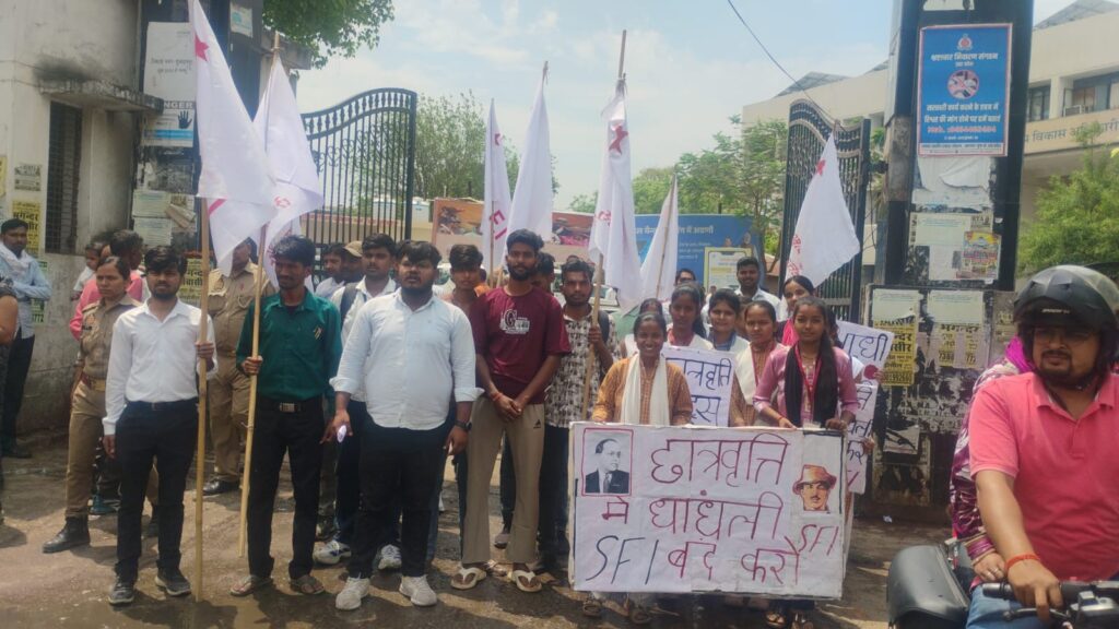 इस मौके पर SFI जिला सचिव दुर्गेश यादव ने कहा कि छात्रवृत्ति का सत्र बीत जाने के बावजूद जिले के अधिकांश पात्र छात्रों को अब तक छात्रवृत्ति नहीं मिल सकी है। आवंटन की अंतिम तिथि 31 मार्च होने के बावजूद छात्रों के खातों में राशि न पहुंचने से उनमें संशय की स्थिति बनी हुई है, जिसका उनके मानसिक स्वास्थ्य पर भी नकारात्मक प्रभाव पड़ रहा है। उन्होंने बताया कि प्रदेश के कई जिलों में बातचीत के दौरान यह सामने आया कि करीब 50 प्रतिशत या उससे अधिक योग्य छात्रों के खातों में 08 अप्रैल तक भी छात्रवृत्ति नहीं पहुंची है।