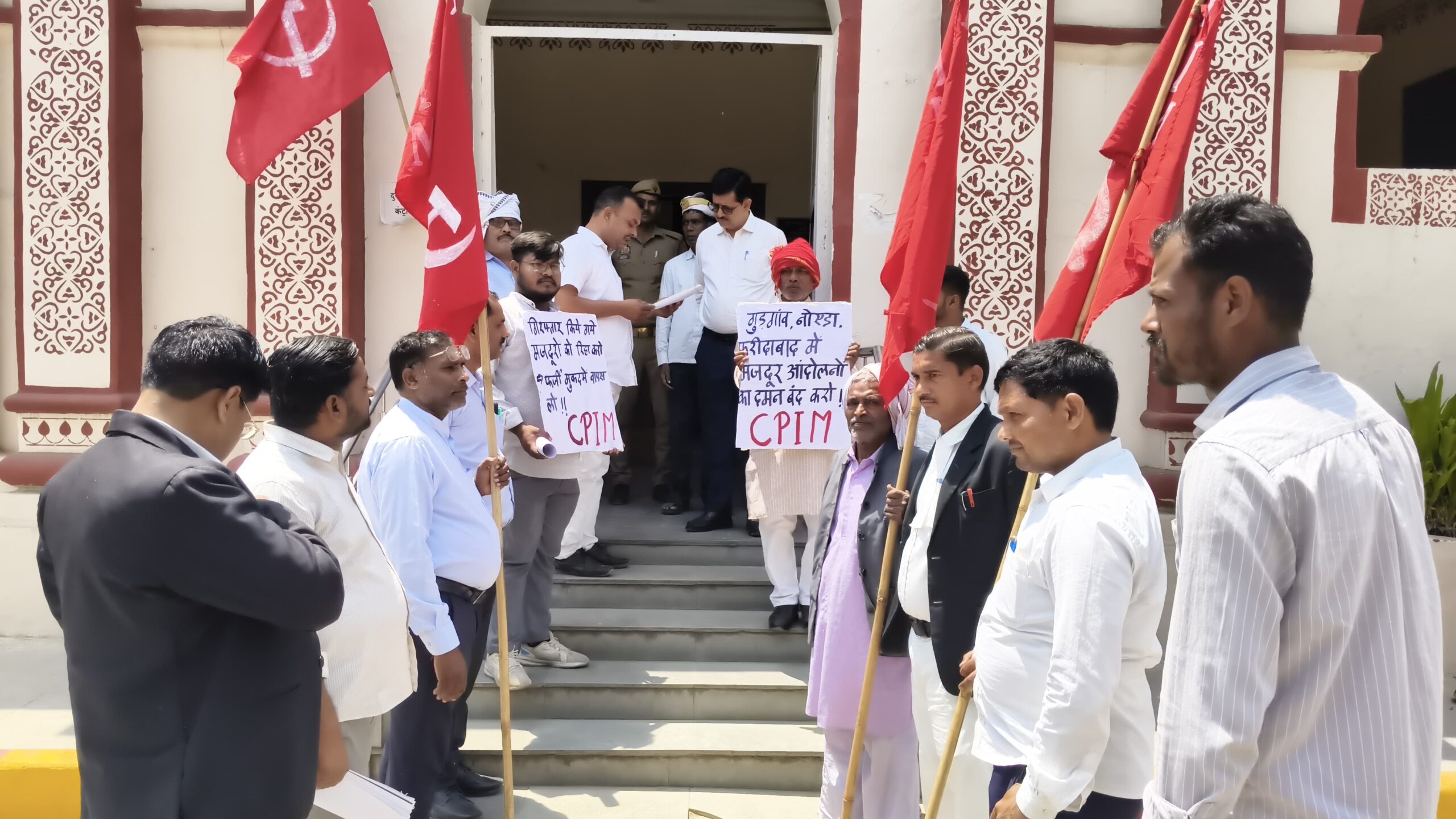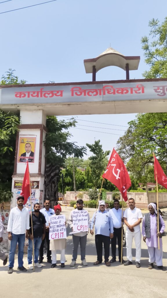 सुल्तानपुर, 18 अप्रैल 2026 — भारत की कम्युनिस्ट पार्टी (मार्क्सवादी) की सुल्तानपुर जिला कमेटी ने नोएडा, गुरुग्राम और फरीदाबाद में हुए मजदूर आंदोलनों पर कथित पुलिसिया दमन के विरोध में शनिवार को प्रदर्शन किया। इस दौरान पार्टी कार्यकर्ताओं ने उत्तर प्रदेश के मुख्यमंत्री को संबोधित ज्ञापन सिटी मजिस्ट्रेट करमजीत सिंह को सौंपा।